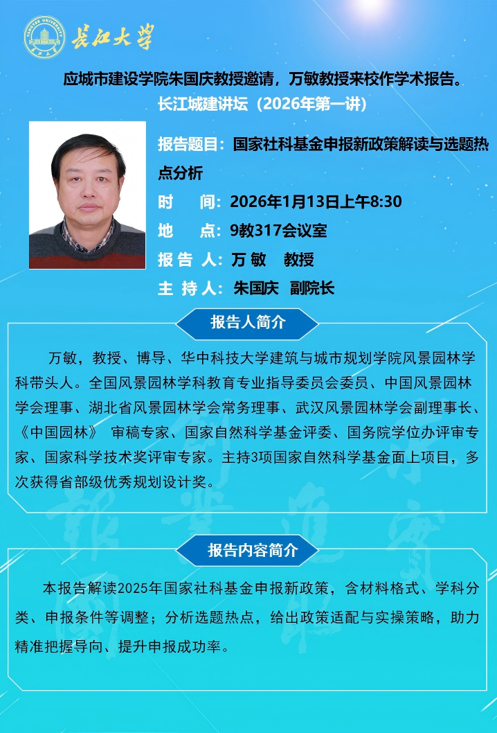 长江城建讲坛2026年第一讲:国家社科基金申报新政策解读与选题热点分析
