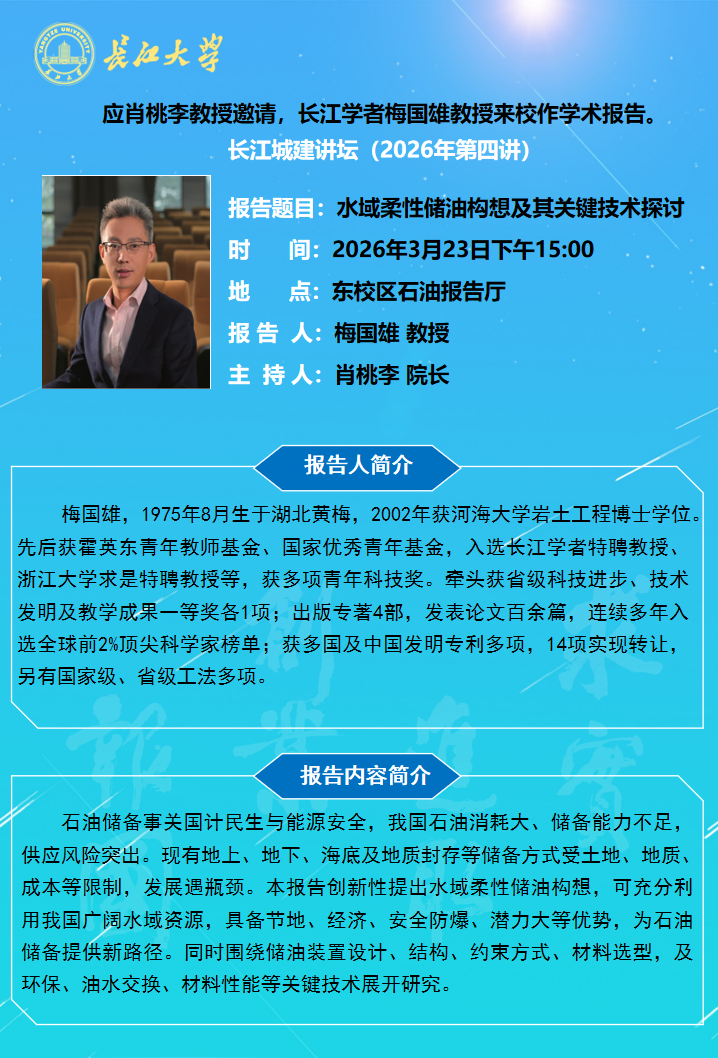 长江城建讲坛2026年第四讲:水域柔性储油构想及其关键技术探讨