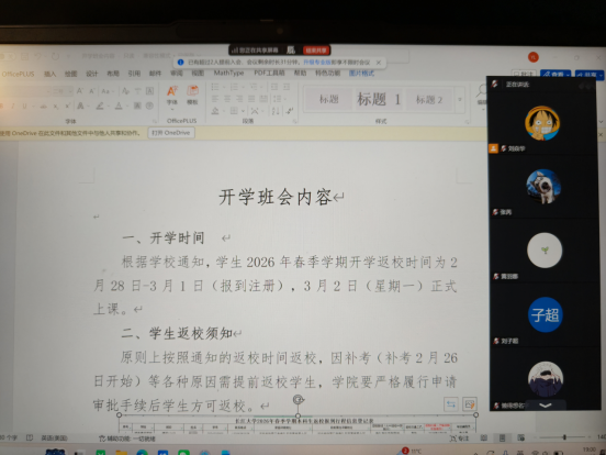 本次班会采用线上召开形式,学生围绕返校相关问题积极提问,师生实时交流。班会同时传递家校协同理念,呼吁学生向家长反馈返校安排与安全要求,形成防护合力。此次班会让学生明确返校纪律与安全要求,提升自我防护和应急处置能力,为新学期平稳开局奠定基础。下一步,学院将持续落实学校部署,细化工作台账,强化安全保障,护航学生成长与教育教学有序开展。